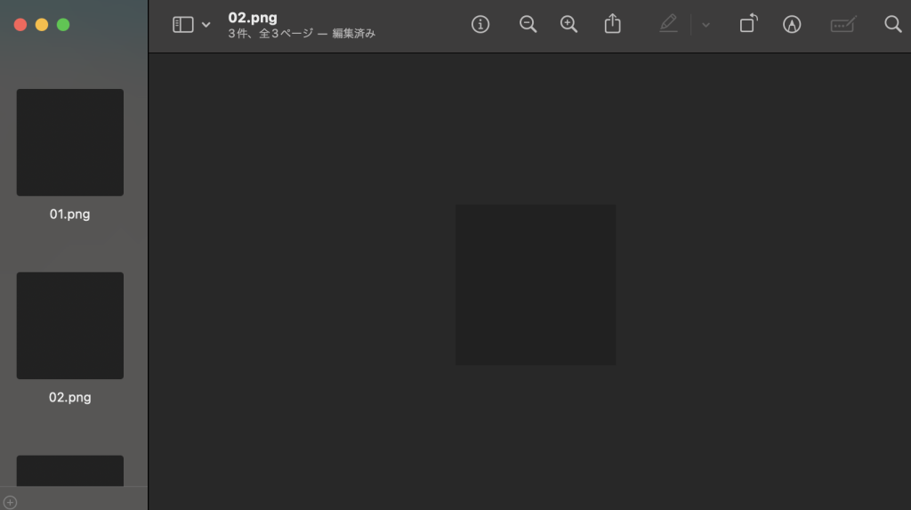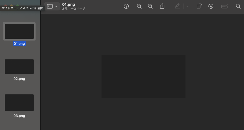 プレビュー内でサイドバーを表示した状態で、Command + Aキーを押してすべての画像を選択します。これにより、まとめて編集操作を適用できるようになります。